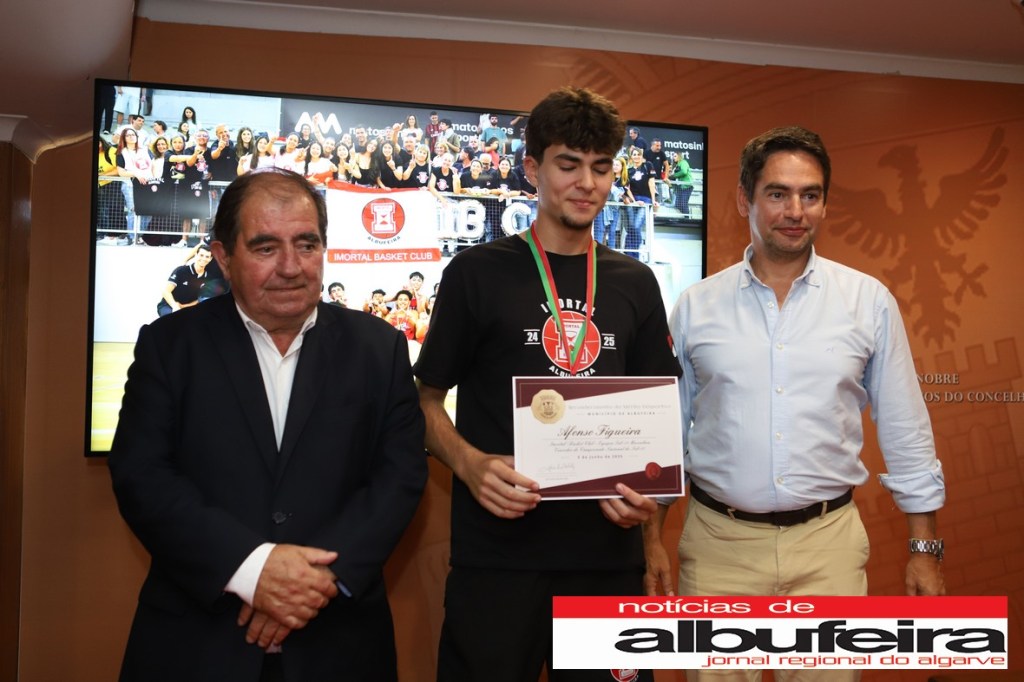 A equipa sénior masculina do Albufeira Futsal Clube, a FUETE – Associação de Dança de Albufeira, e a equipa desub-18 masculinos do Imortal Basket Clube viram o seu mérito reconhecido pelo Município. Em causa estão conquistas alcançadas recentemente pelos clubes, assinaladas numa cerimónia organizada no passado dia 5 de junho. O presidente da Câmara Municipal de Albufeira, José Carlos Rolo, admitiu que “não podia estar mais satisfeito com o contributo dos clubes para elevar o nome do concelho”.