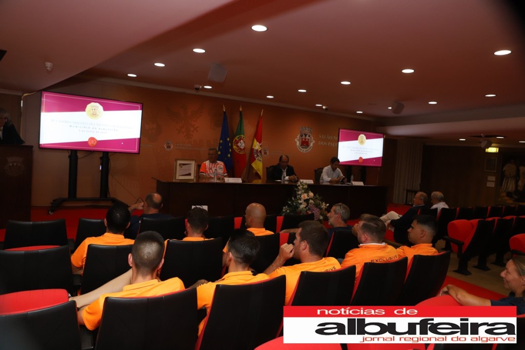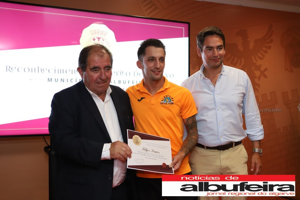 Na primeira parte, o destaque foi para a equipa sénior masculina do Albufeira Futsal Clube. O presidente do Município de Albufeira, José Carlos Rolo, felicitou os “jogadores, equipa técnica e dirigentes pelo feito alcançado”,