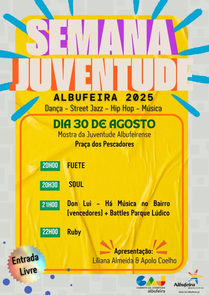 A Mostra da Juventude realiza-se no próximo doa 30 de agosto, e insere-se na Semana da Juventude. A iniciativa é organizada pelo Município de Albufeira, e contou com vários eventos ao longo das últimas semanas. Além de um passeio de barco, o programa incluiu eventos como o “The Circuit”, no Skate Park de Albufeira, e ainda atividades de Futevólei, e Fitness.