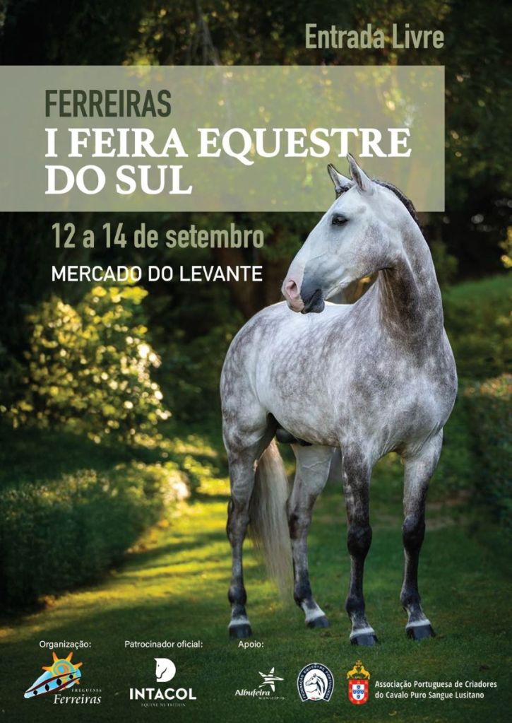 A Junta de Freguesia de Ferreiras anuncia a realização da Feira Equestre do Sul, que terá lugar de 12 a 14 de setembro de 2025, no Mercado do Levante, em Ferreiras, Albufeira. O evento será dedicado ao mundo equestre, com especial destaque para o Cavalo Lusitano, reunindo criadores, cavaleiros, amantes da equitação e curiosos em torno de competições, demonstrações, momentos de convívio e valorização da cultura equestre.